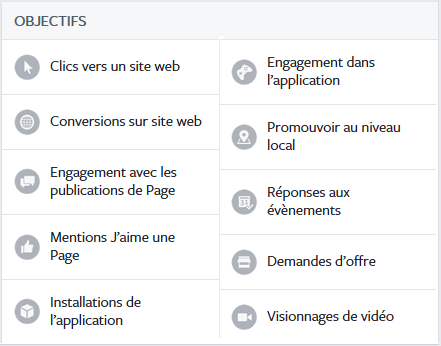 Cette présentation par objectifs a pour avantage de ne plus complètement nécessiter de connaître les formats par cœur pour commencer à faire de la publicité sur Facebook. Ce qui est une bonne nouvelle puisque pour publier vos premières publicités, vous n’avez pas à connaître tous ces formats.